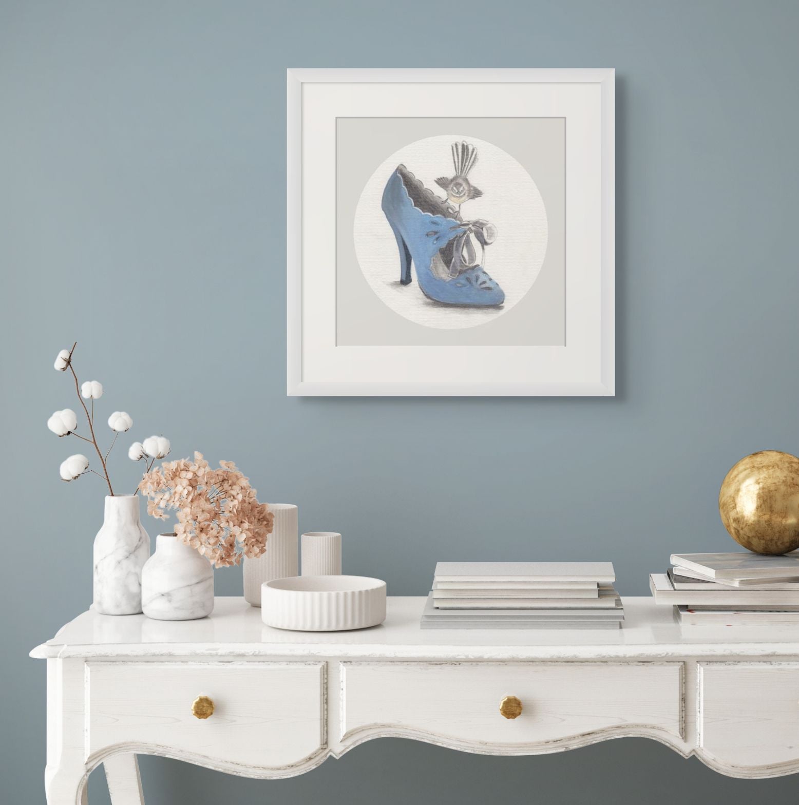 This little watercolour and graphite was a gift for my grandmother who turned 100. A very special little work of a vintage shoe and a fantail sitting on it.