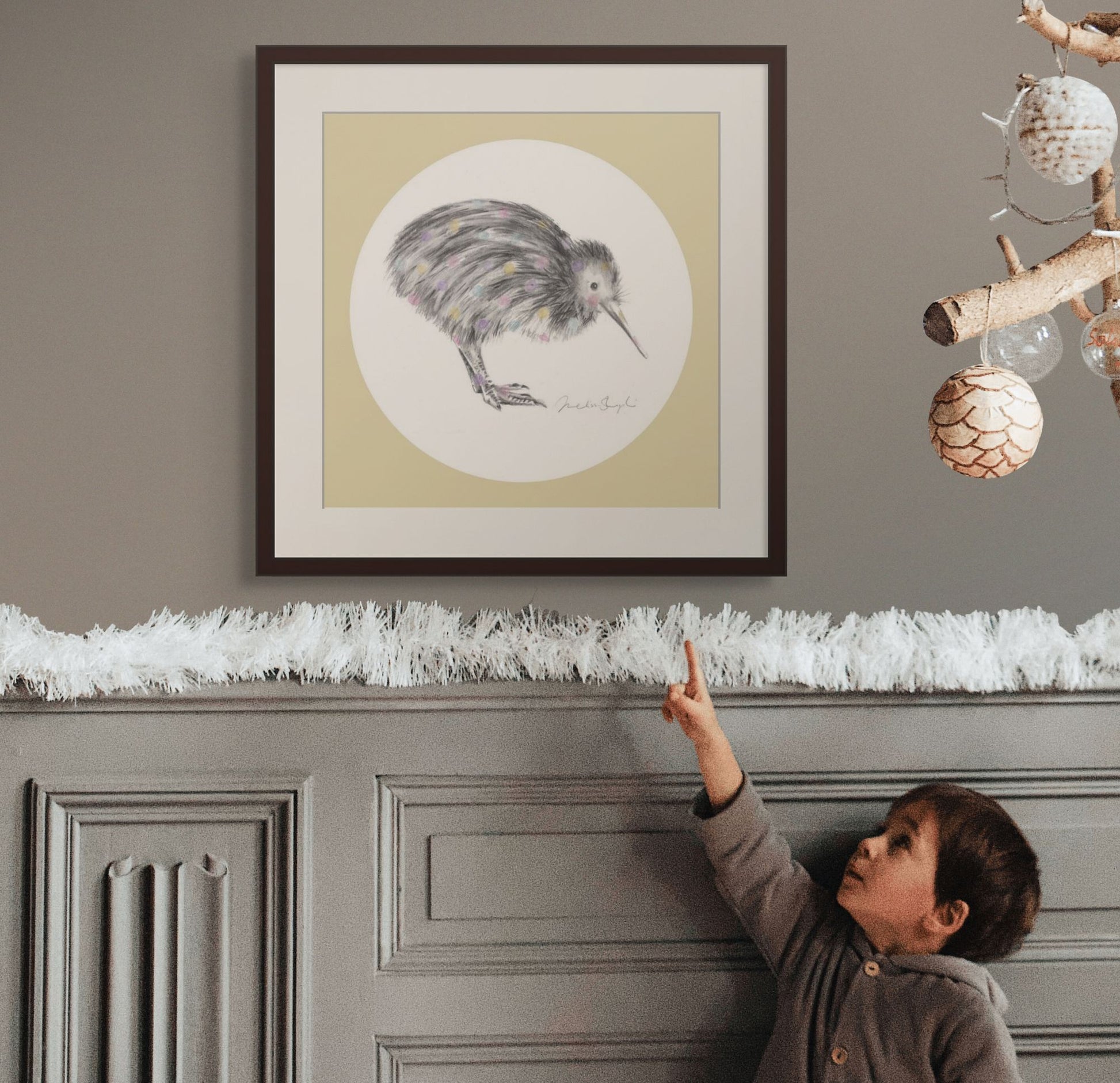 A little yellow spotted Kiwi — a playful twist on NZ’s national bird.